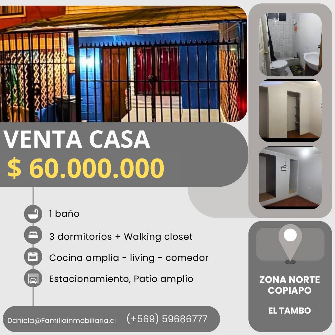 La propiedad se emplaza en un consolidado y tranquilo barrio, cuenta con locomoción a la puerta y a 10 minutos del centro de Copiapó; En sus cercanías se encuentran escuela, liceo, cesfam, reten de carabineros, áreas verdes, entre otros.