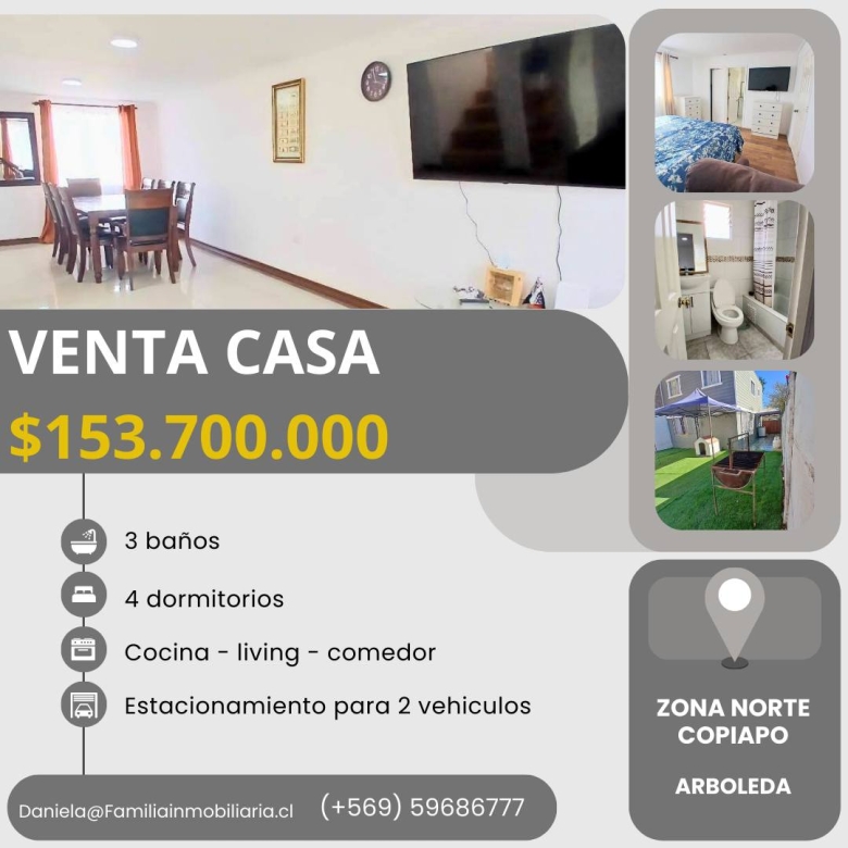 La propiedad se emplaza en un consolidado y tranquilo barrio, cuenta con locomoción a la puerta y 10 minutos del centro de Copiapó; En sus cercanías se encuentran Scuola Italiana, jardines infantiles, cuerpo de bomberos, centro teletón, StripCenter portal la chimba, canchas deportivas y áreas verdes, entre otros.